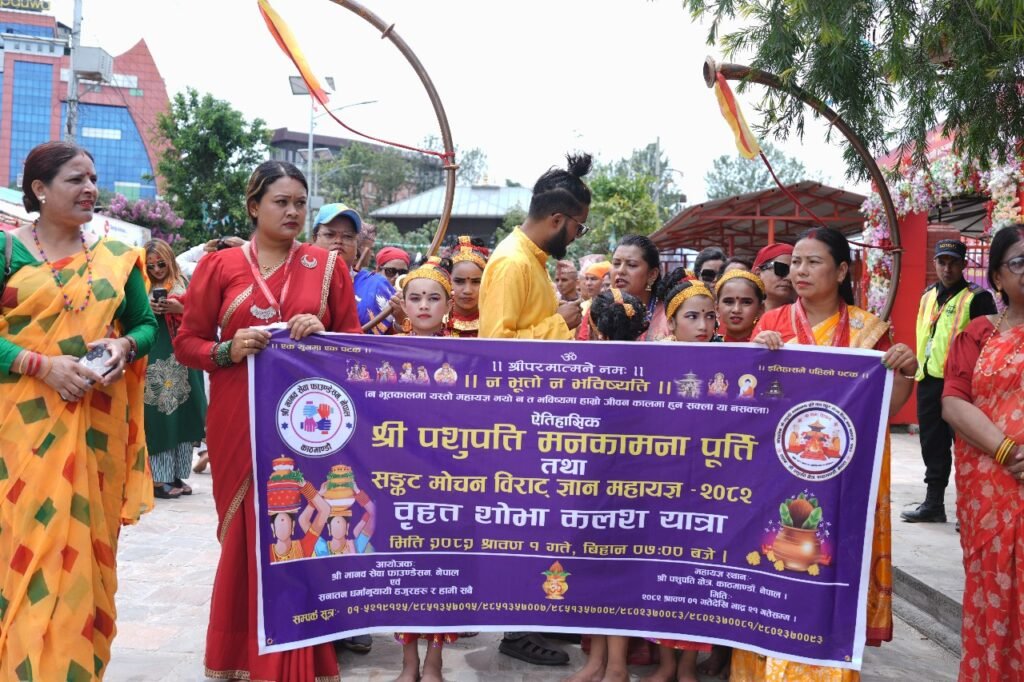 पशुपतिको सुमार्गी भवन अगाडी रहेको पार्किङ क्षेत्रबाट प्रारम्भ भएको कलश यात्रा पशुपति रुद्रगारेश्वर हुदै मनकामना पूर्ति मोचन विराट ज्ञान महायज्ञको प्रमुख पण्डा स्थल हंसमण्डपमा पुगेर सम्पन्न भएको हो ।