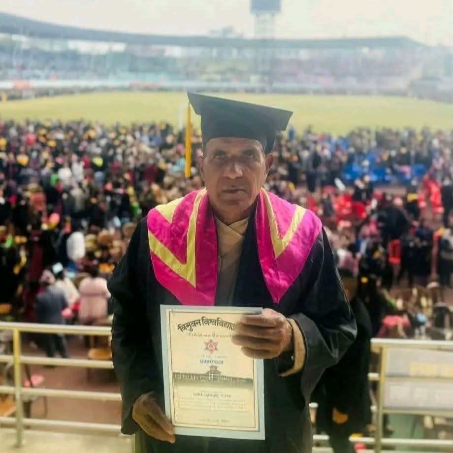 उमेर सिकाइको सिमा रेखा होइन, चाहना र इच्छाशक्तिको परिक्षा मात्र हो—यो सन्देशलाई जीवनमा उर्तादै खोटाङका इन्द्रबहादुर थापाले नेपाली समाजलाई गहिरो सन्देश दिएका छन् । ६८ वर्षको उमेरमा त्रिभुवन विश्वविद्यालयको ५१औं दीक्षान्त समारोहबाट समाजशास्त्रमा स्नाकोत्तर उपाधि हासिल गर्नु केवल व्यक्तिगत उपलब्धि मात्र होइन, सम्पूर्ण समाजका लागि प्रेरणाको उज्यालो दिप हो । तीन दशकसम्म सरकारी सेवामा समर्पित रहँदै आफ्नो कर्तव्य इमान्दारीपूवर्क निभाएका थापाले पारिवारीक जिम्मेवारीलाई पनि उत्तिकै प्राथमिकताका साथ पूरा गरे । आफ्ना छोराछोरीलाई उच्च शिक्षाको बाटोमा अघि बढाउँदै कसैलाई उपसचिव, कसैलाई इन्जिनियर, अधिकृत, शिक्षक, सैनिक र विदेशमा उच्च शिक्षा हासिल गर्ने अवसर दिलाउनु आफंैमा एउटा सफल अभिभावकत्वको उदाहरण हो ।